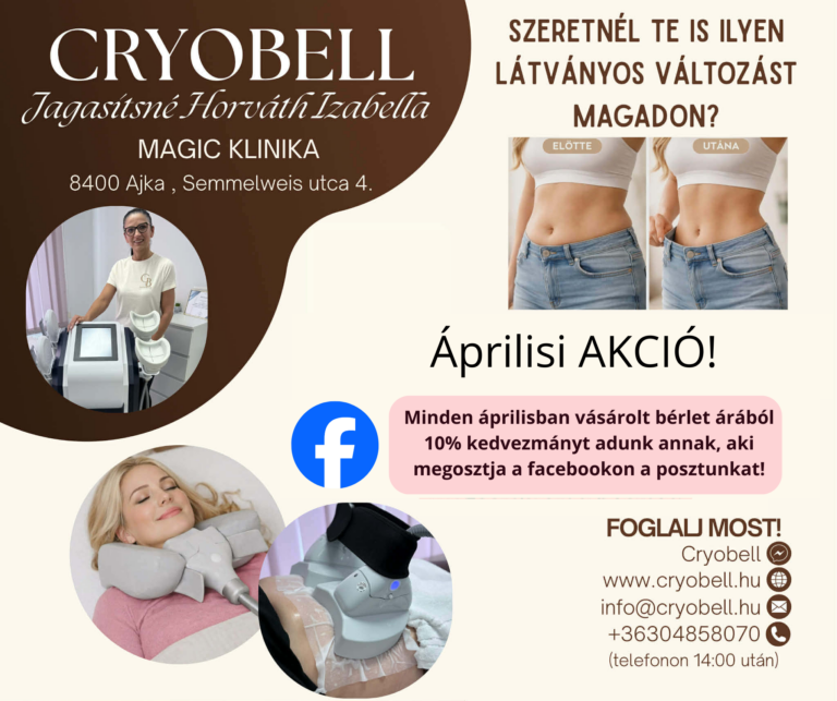 A CryoBell Ajkán modern kriolipolízis és HIEMT alakformáló kezeléseket kínál. A kezelések segítenek a makacs zsírpárnák csökkentésében és az izomtónus fokozásában, műtét és felépülési idő nélkül. Időpontfoglalás gyorsan és egyszerűen online.